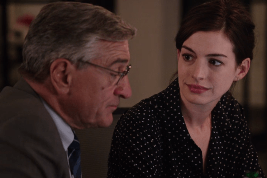 Jules Ostin (played by actress Anne Hathaway, remember cat woman in the “The Dark Knight Rises” ) is the lady behind the vision of this fast growing Internet company, who devoted last 2 years of her life to make this company grow big with 220 employees today. An ambitious private person with super busy schedule to catch up with every important work, Jules is usually not good to balance her life. Due to his professional life, she often got less sleep, improper food routine and probably less time for her personal life. Her husband had sacrificed his career, so that he could take care of their only daughter as full time male-mom, so that Jules could achieve what she deserves in her professional career that she has built so far.
